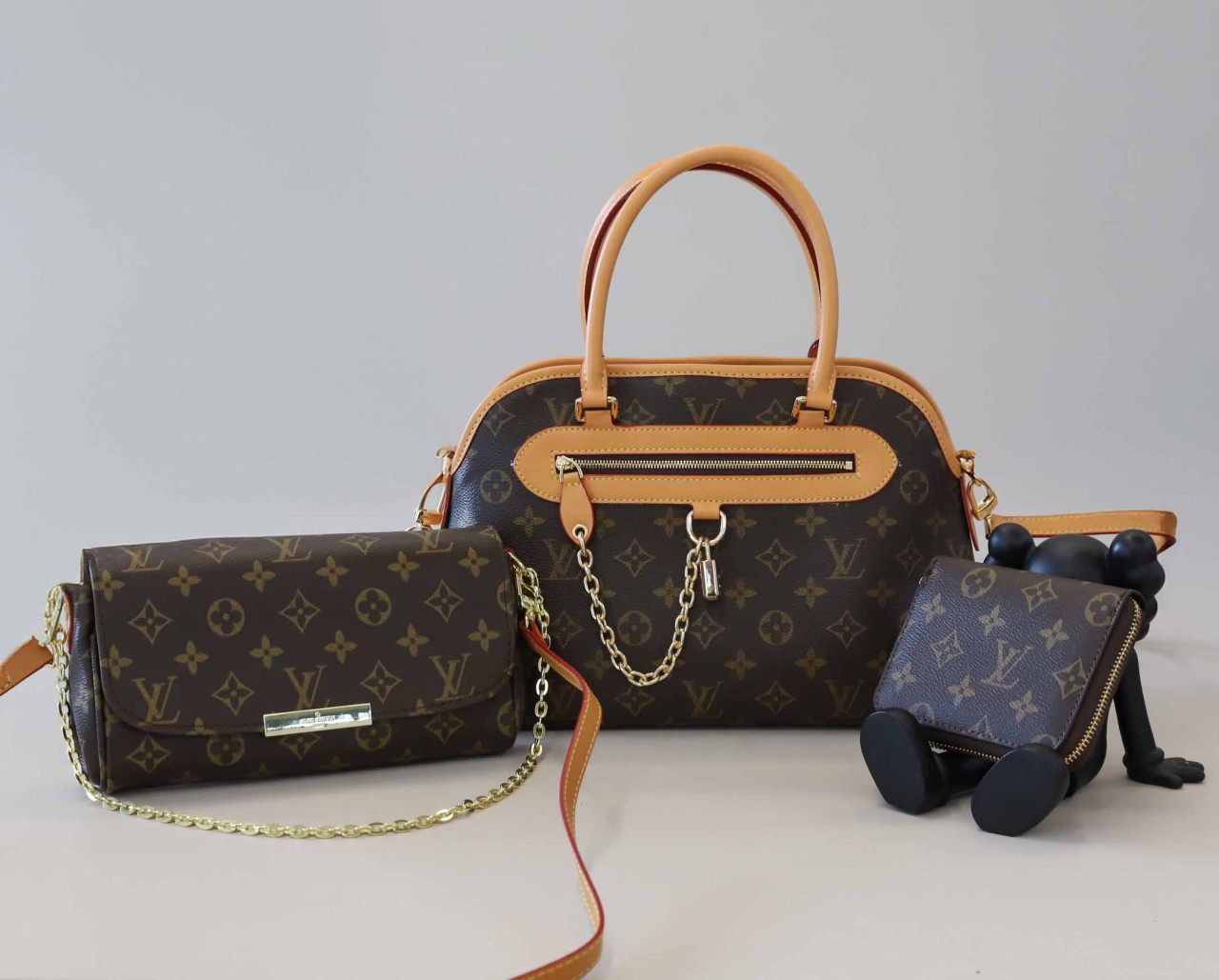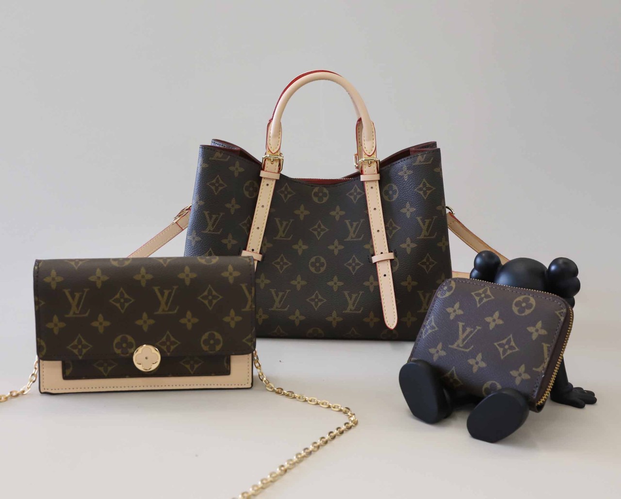 [LOUIS VUITTON] 루이비통 나노 다이앤 & 모노그램 어라운드 반지갑 & 라부부 시크릿 키링 셋
