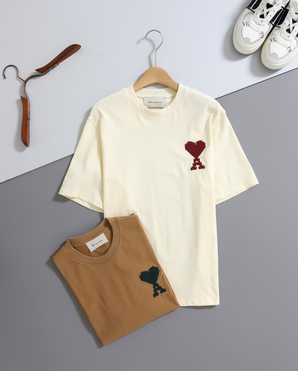 아미 [ am* ] 수입 드 꾀흐 빅 A하트 로고 자수 베이직 반팔 티셔츠