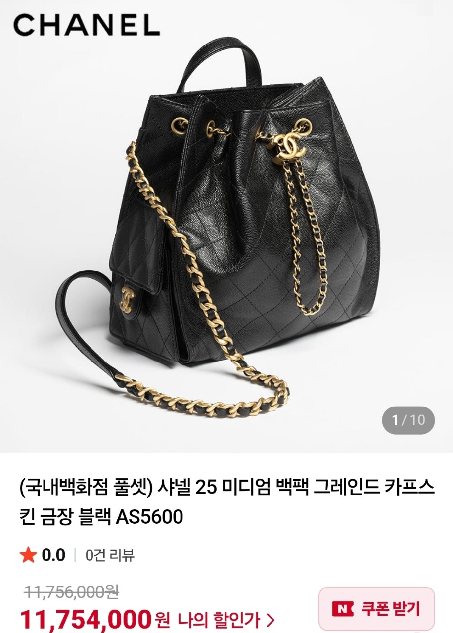 샤넬 25 미디엄 백팩 그레인드 카프스킨 금장 블랙