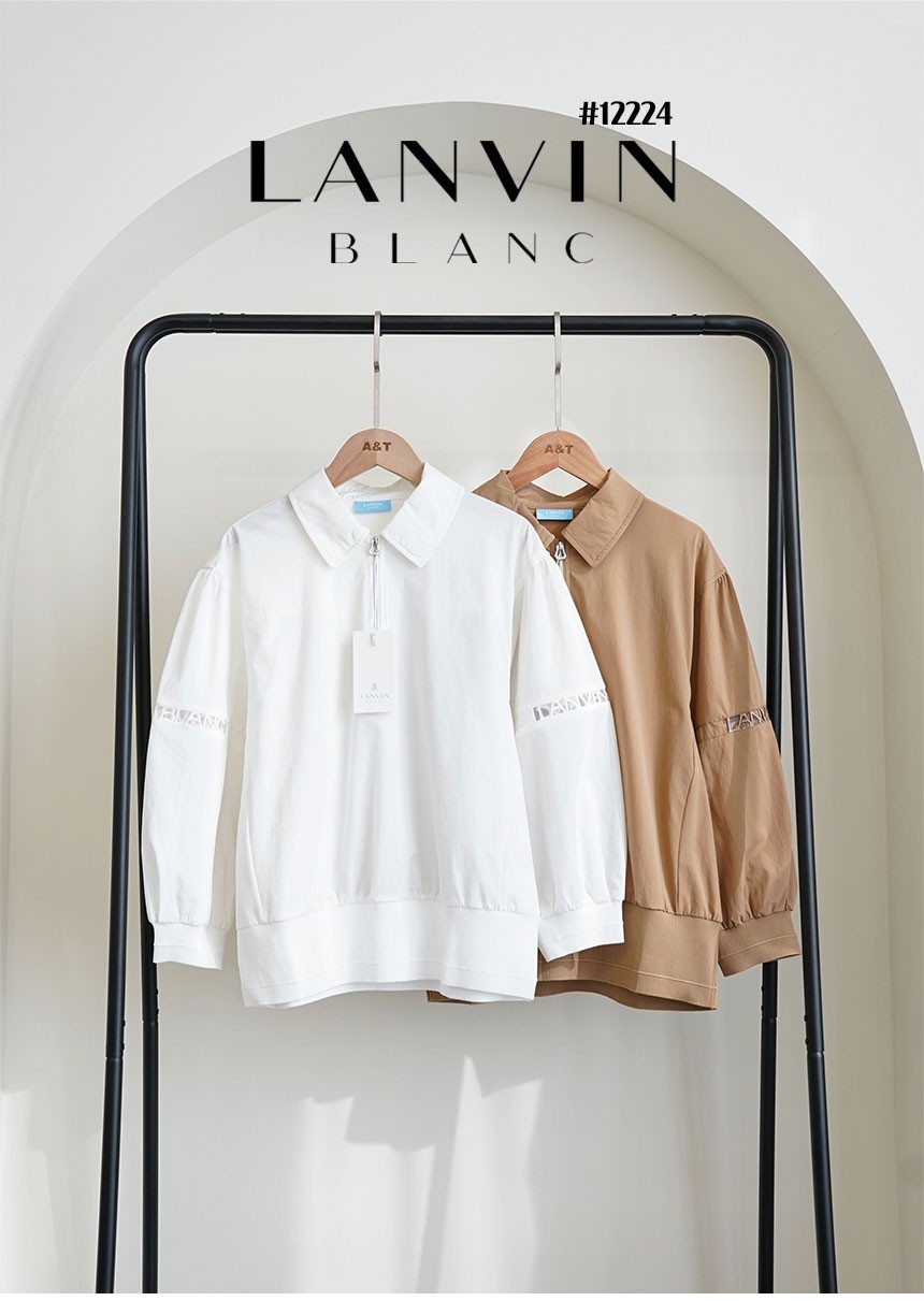 [LANVIN BLANC] 랑방블랑 골프웨어 여성 레이스 로고 하프 집업 밴딩 탑