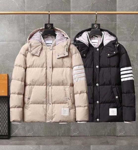 톰브라운 루즈 후드 쇼트 다운 재킷 스트라이프 솔리드