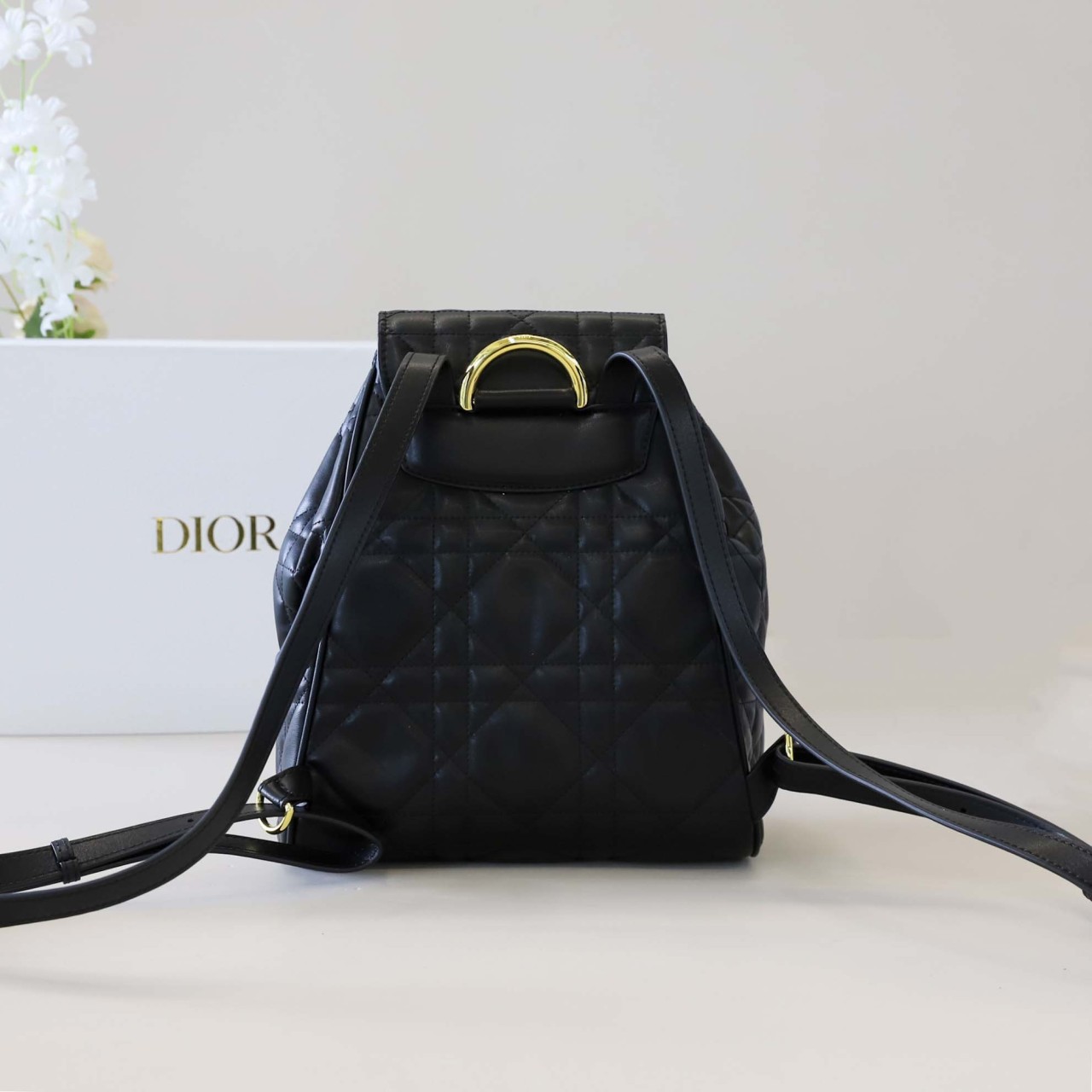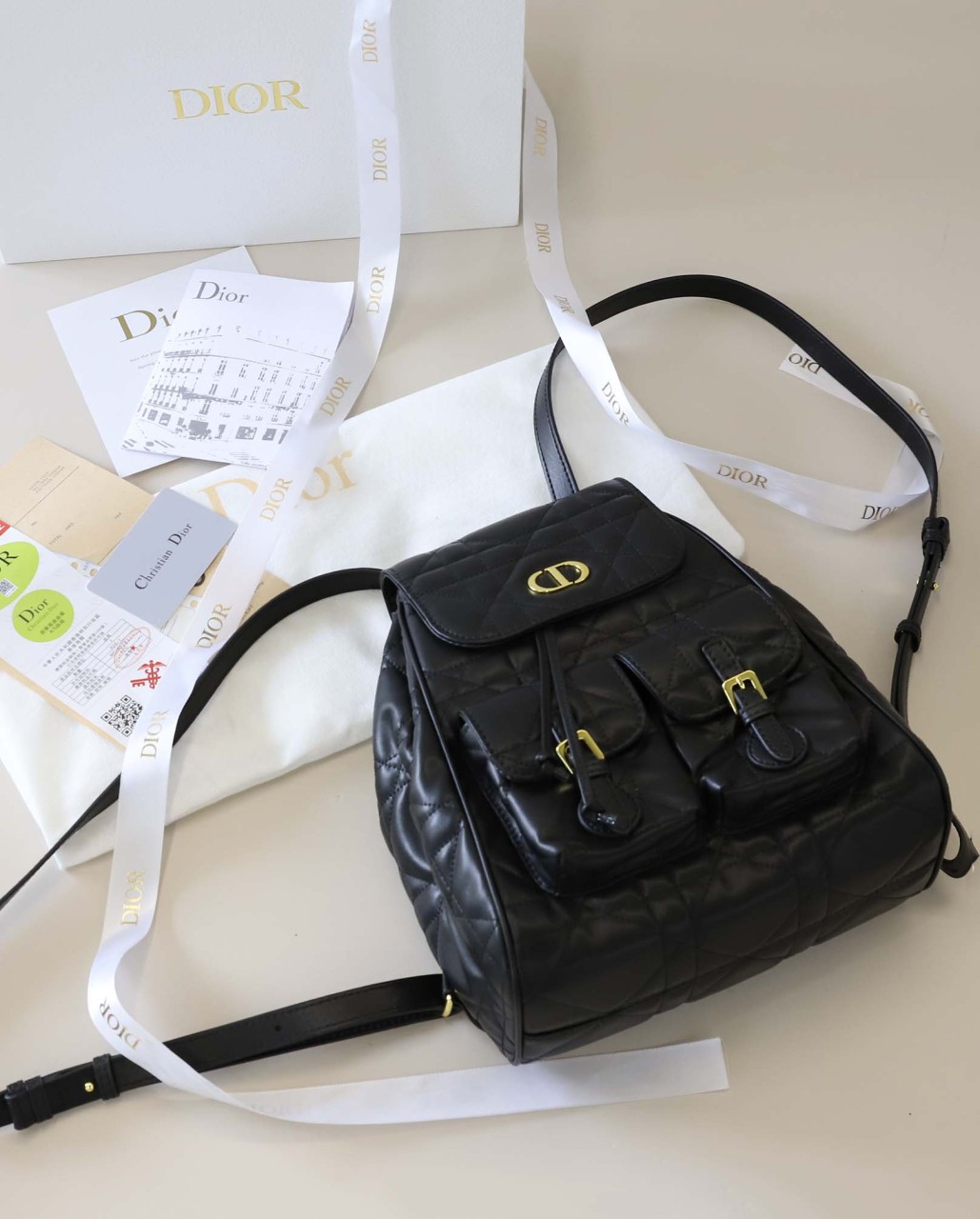 매크로까나쥬 스티칭을 더한 블랙 양가죽 소재로 제작되었으며, 앤틱 골드 피니시 메탈 CD 시그니처 디테일의 플랩을 열면 나타나는 넉넉한 드로우스트링 메인 수납공간과 작은 데일리 소지품을 모두 담을 수 있는 스몰 플랩 포켓 2개가 특징.