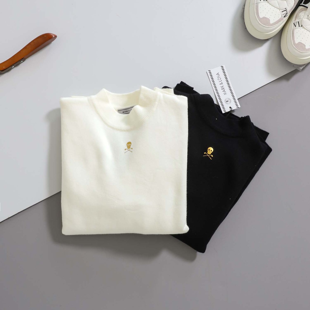 마크앤로나 [ M & L ] 남여공용 백 스컬로고 기모 스웨터
