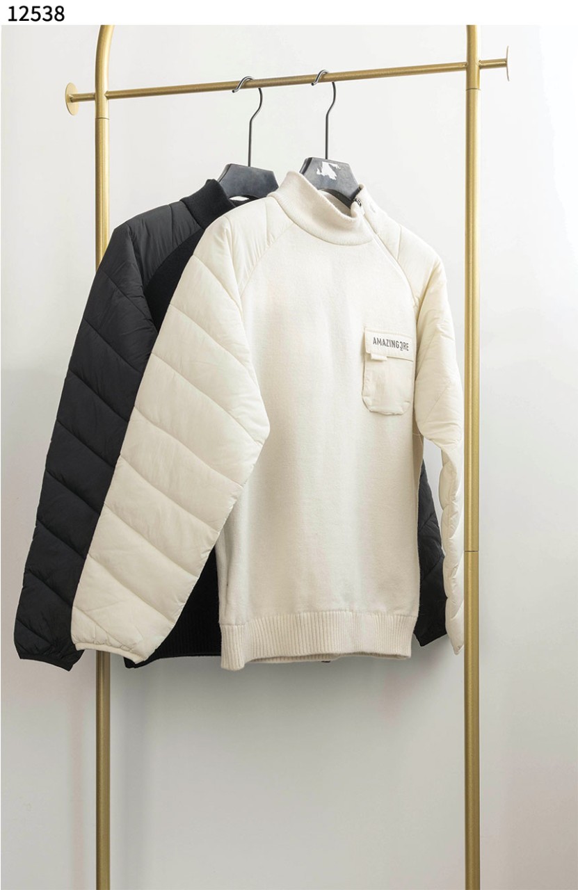 어메이징크리 [AMAZINGCRE] 남성 겨울 프리미엄 패딩니트 골프 티셔츠