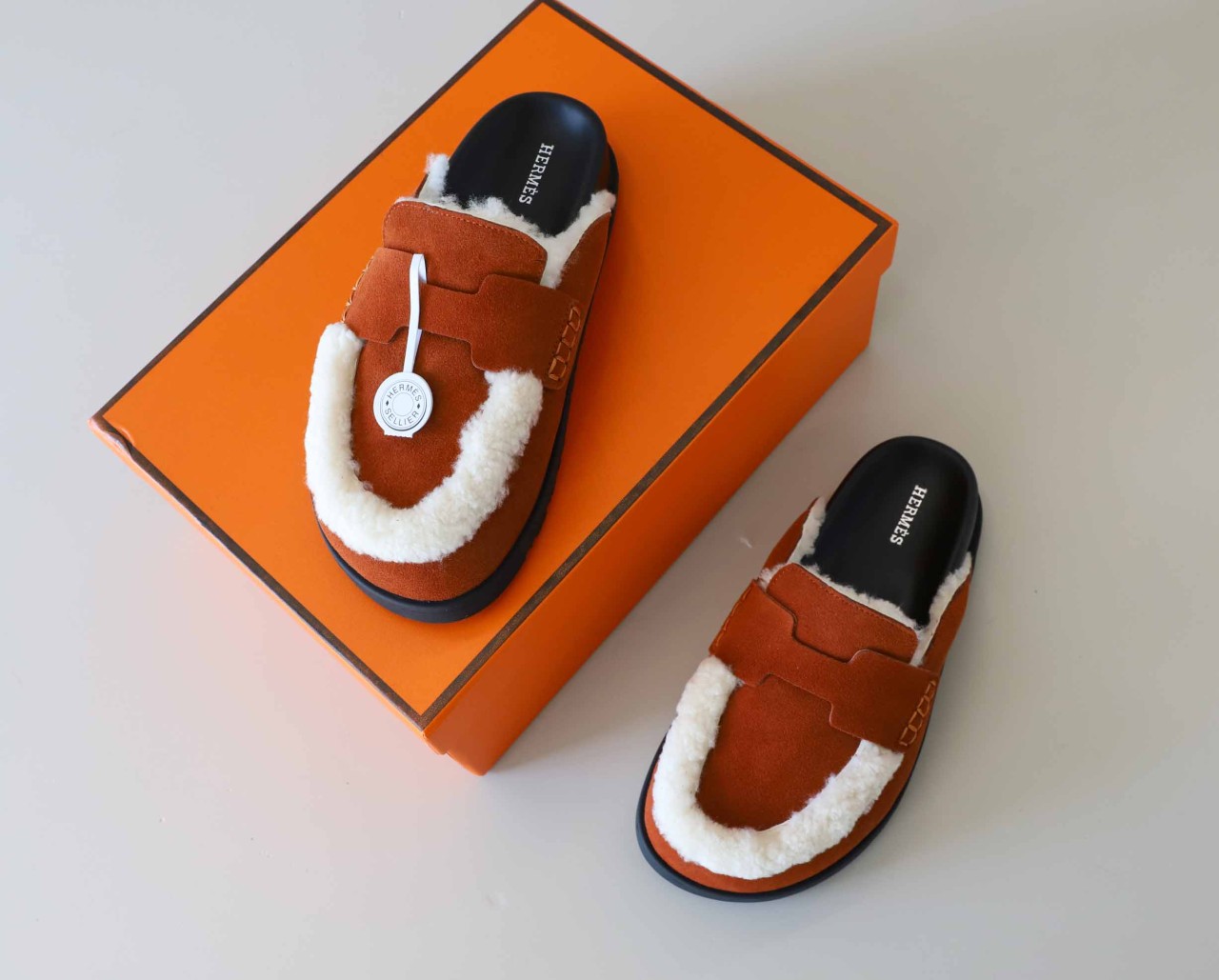 [HERMES] 에르메스 스웨이드 고(GO) 뮬 슬리퍼