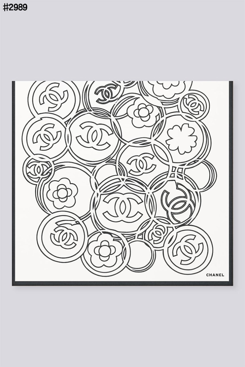 [CHANEL] 샤넬 CC 까멜리아 아트워크 실크 숄 스카프