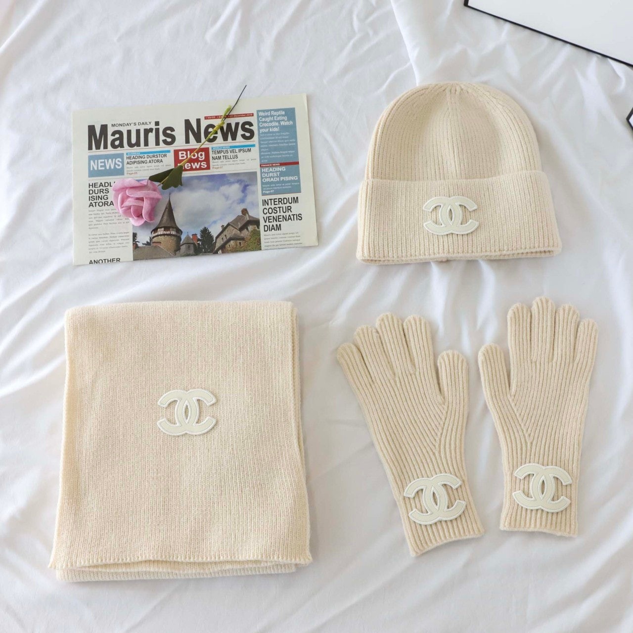 샤넬 [ C*ANEL ] 수입 CC로고 캐시미어 비니 스카프 장갑 3종 SET