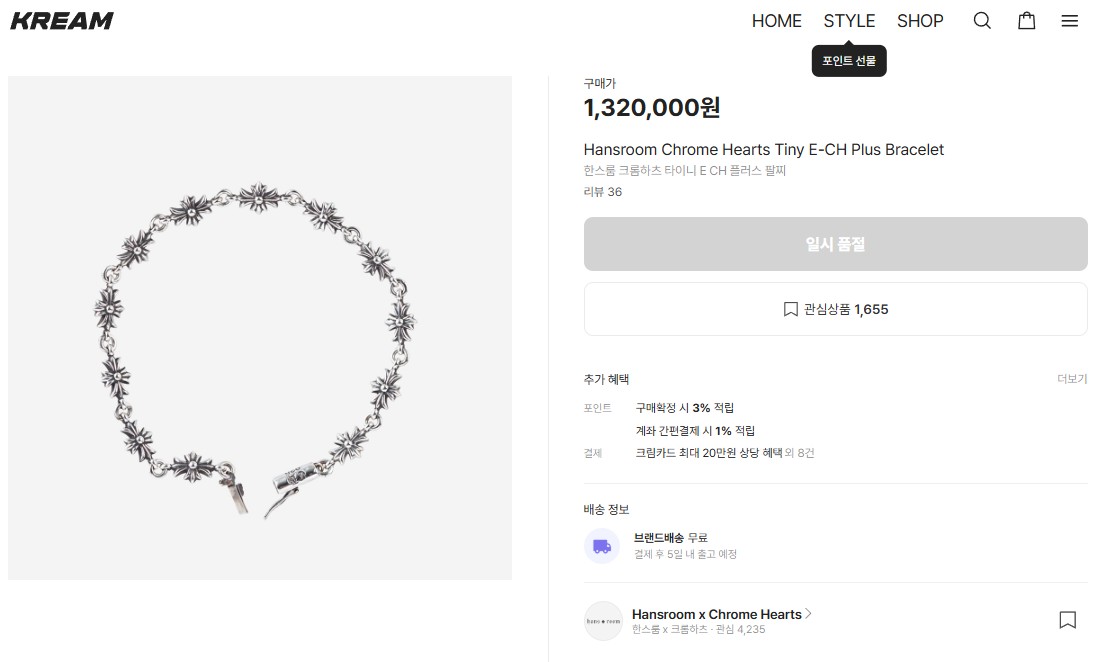 크롬하츠 BS플레어 볼 컷아웃 팔찌