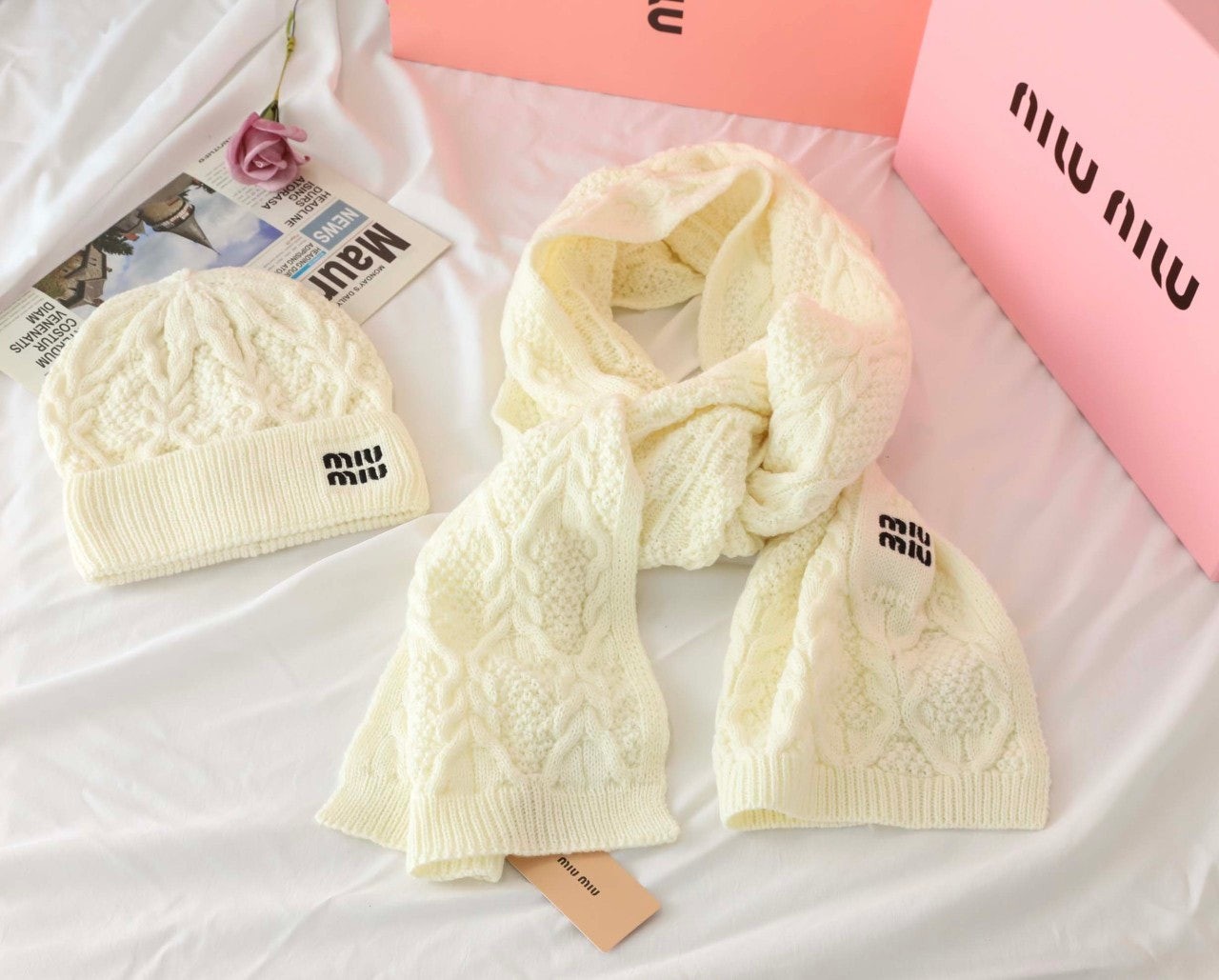 미우미우 [ miu ] 수입 케이블 니트 캐시미어 비니 스카프 2종 SET