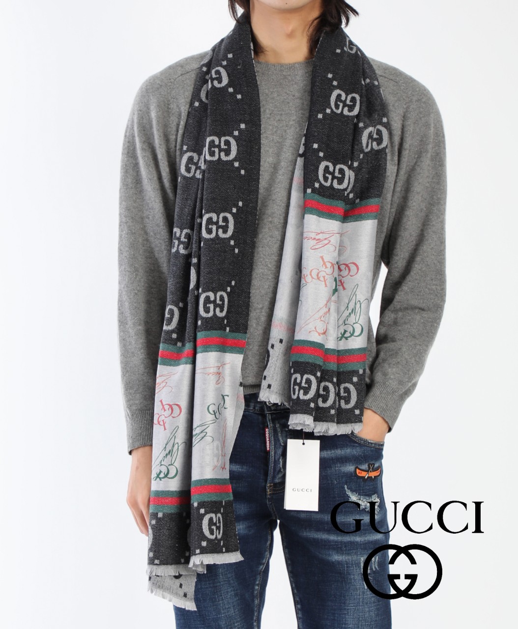 [GUCC] 구찌 수입 GG로고 자가드 벌삼선 캐시미어 머플러