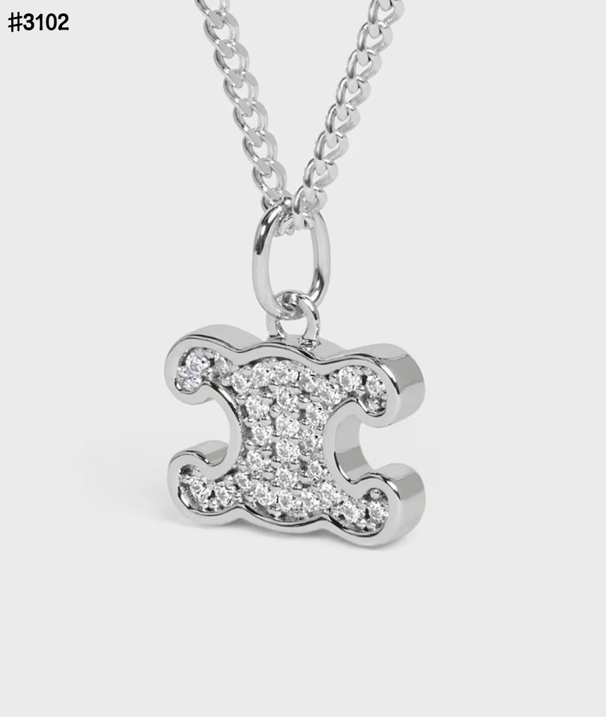 [CELINE] 셀린느 트리옹프 라인 스톤 네크리스 로듐 피니시 브라스&크리스탈