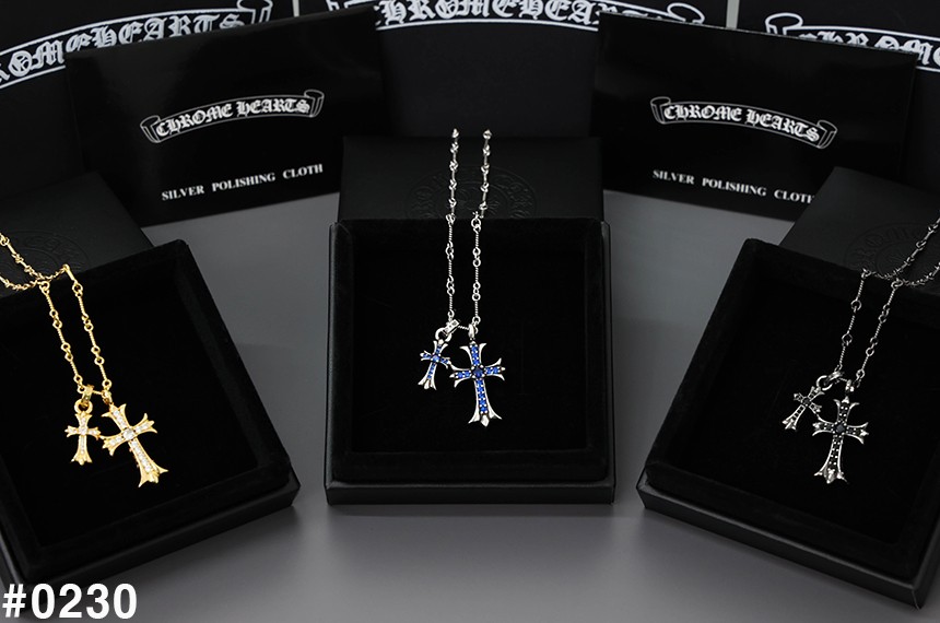 [Chrome Herts] 크롬하츠 더블 크로스 베이비 펫 파베 크로스 참 펜던트 네크리스