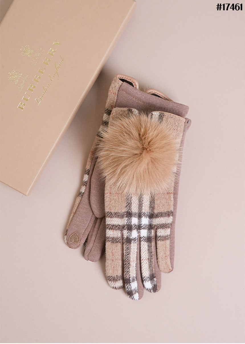 [BURBERRY] 버버리 폭스 퍼 울 체크 장갑