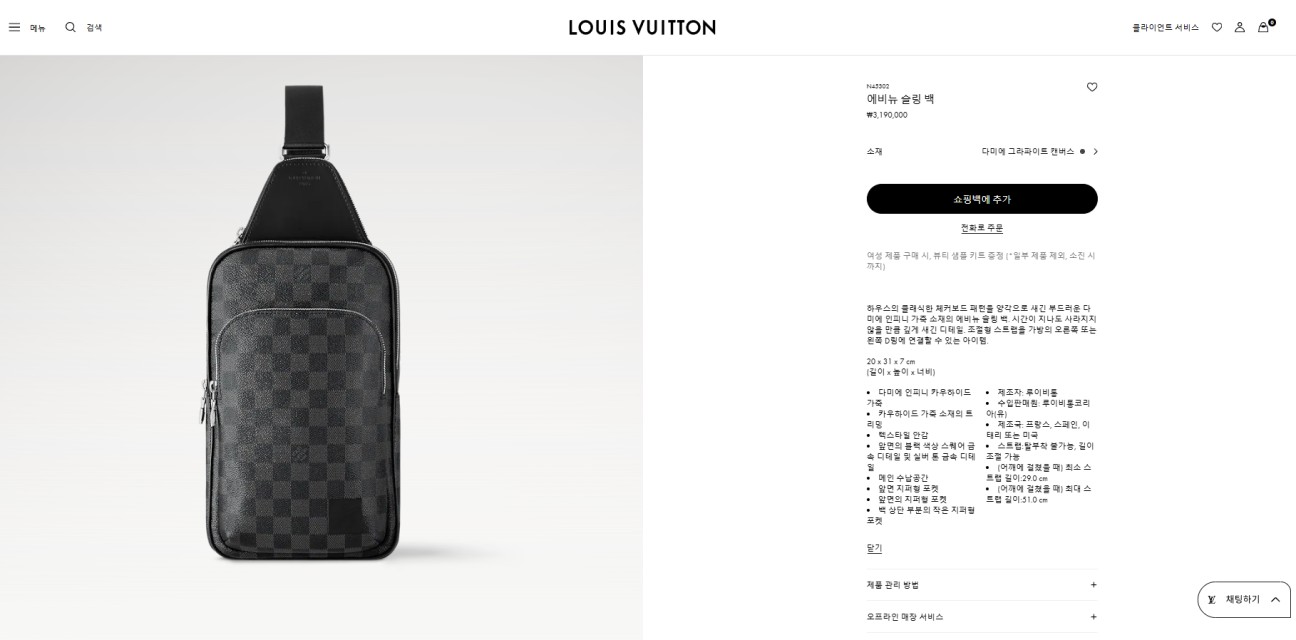 루이비통 에비뉴 슬링 백 다미에 그라파이트