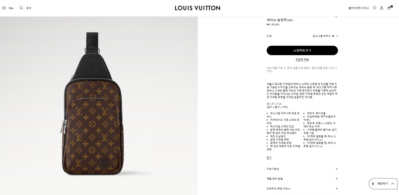 루이비통 에비뉴 슬링 백 모노그램 마카사