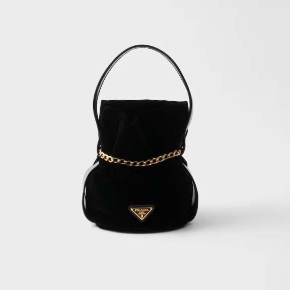 프라다 [ P*ADA ] 수입 쁘띠 삭 누아르 미니 벨벳 및 나파 가죽 버킷 백