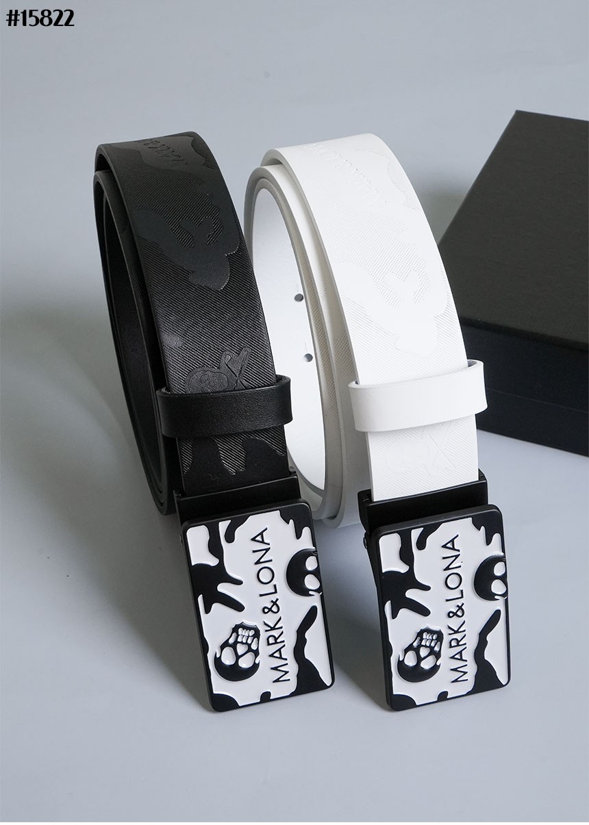 [MARK&RONA] 마크앤로나 남성 밀크 카우 스퀘어 버클 로고 타공 레더 벨트(컷팅식)