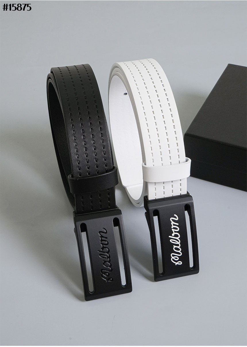 [MALBON] 말본 남성 베이직 스퀘어 블랙 버클 타공 레더 벨트(컷팅식)