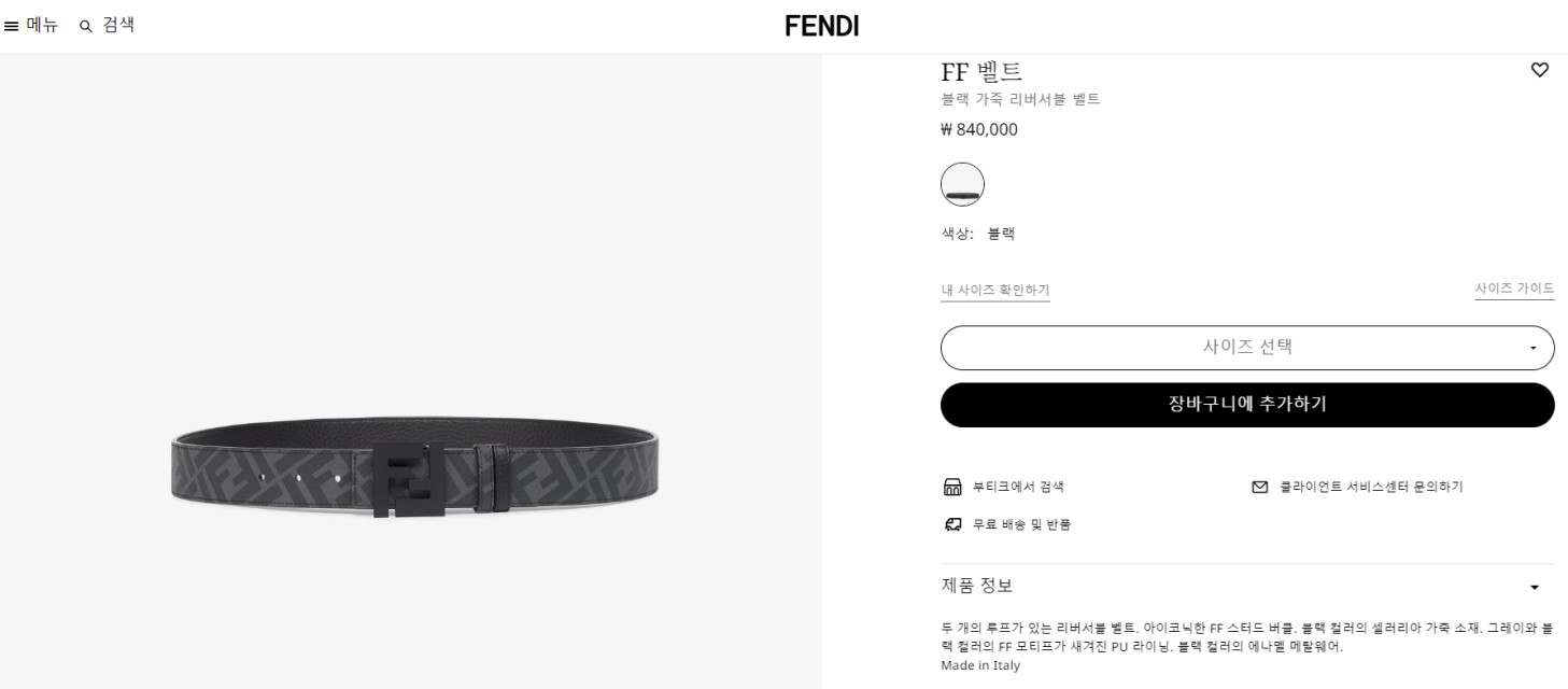 팬디 [FENDI] 수입프리미엄급 남성 FF로고 가죽 벨트