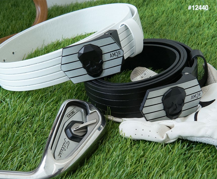 [AMAZING CRE] 어메이징크리 남성 블랙스컬 로고 골프벨트