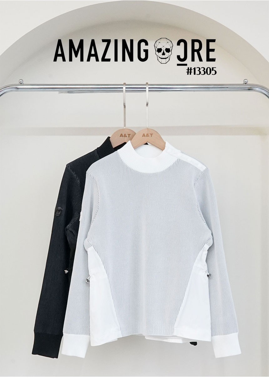 어메이징크리 [ AMCR ] 남여공용 아코디언 하이넥 이너티셔츠