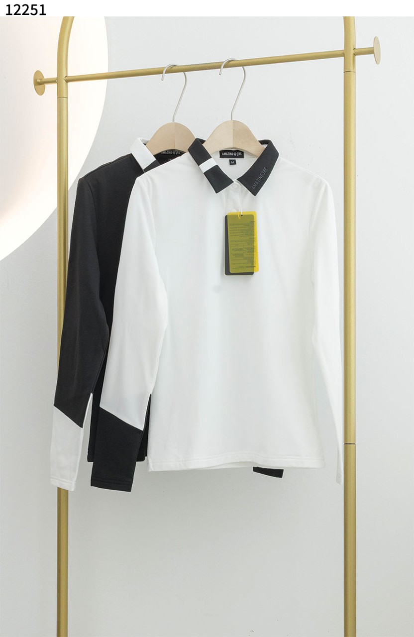 어메이징크리 [AMAZINGCRE] 배색 긴팔 카라티셔츠