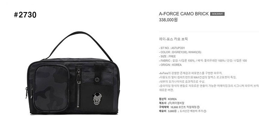 [AMAZING CRE] 어메이징크리 에어-포스 카모 브릭 파우치 백