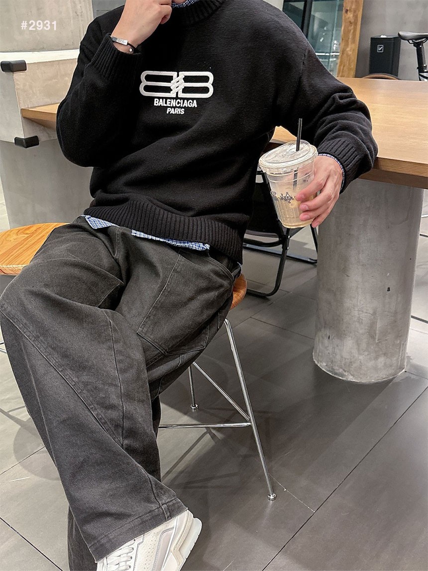 [BALENCIAGA] 발렌시아가 자수 로고 베이직 울 블렌드 니트 풀오버