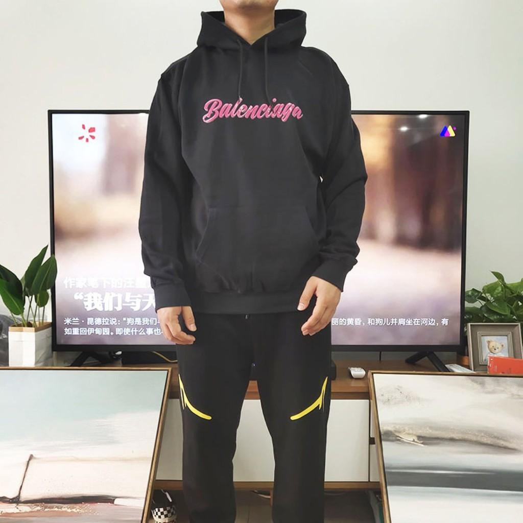 발렌시아가 [BALENCIAGA] 체스트 로고 블랙 후드탑