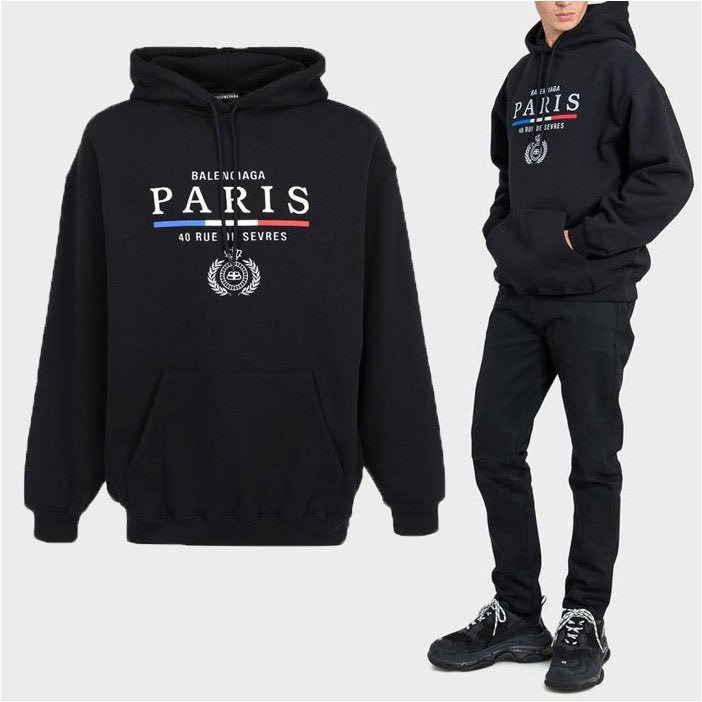 발렌시아가 삼색라인 파리스 로고 나염 후드티