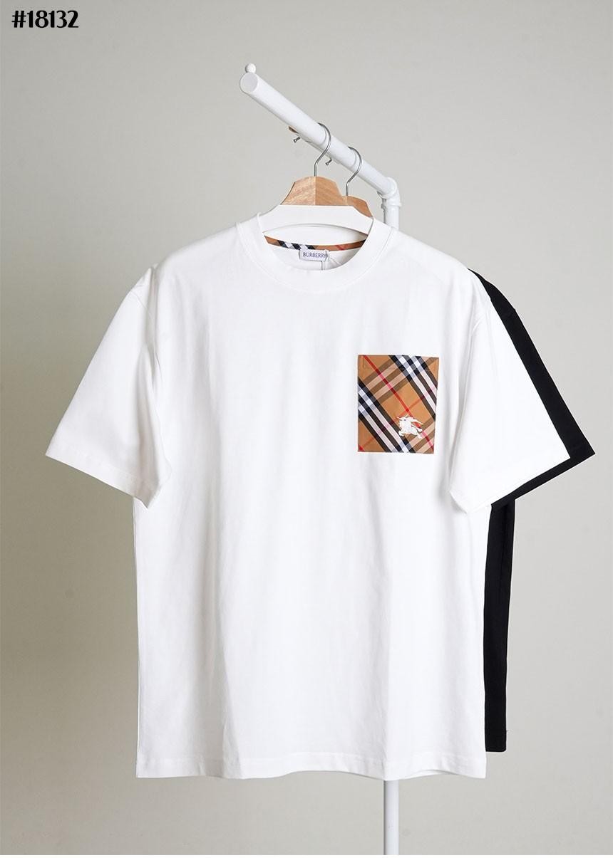 [BURBERRY] 버버리 체크 라벨 포켓 코튼 크루넥 티셔츠