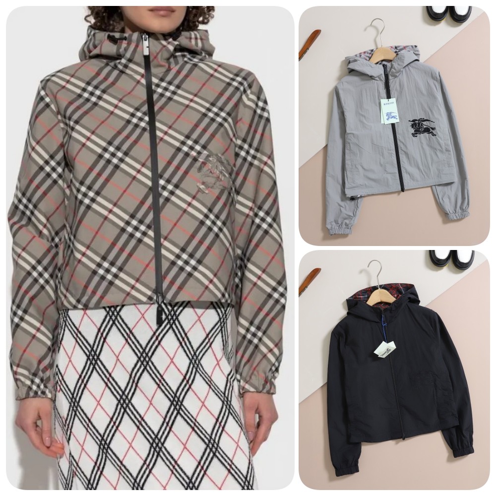 [BURBERRY] 버버리 체크 라이닝 자수 로고 집업 자켓