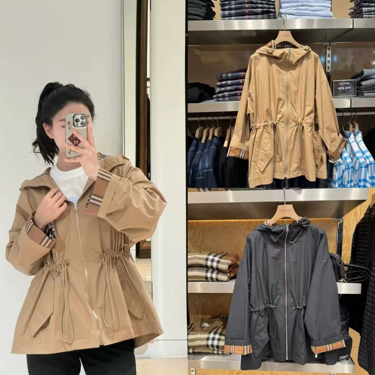 버버리 [ B*RBERRY ] 수입 이너체크 드로스트링 코튼 후드 자켓