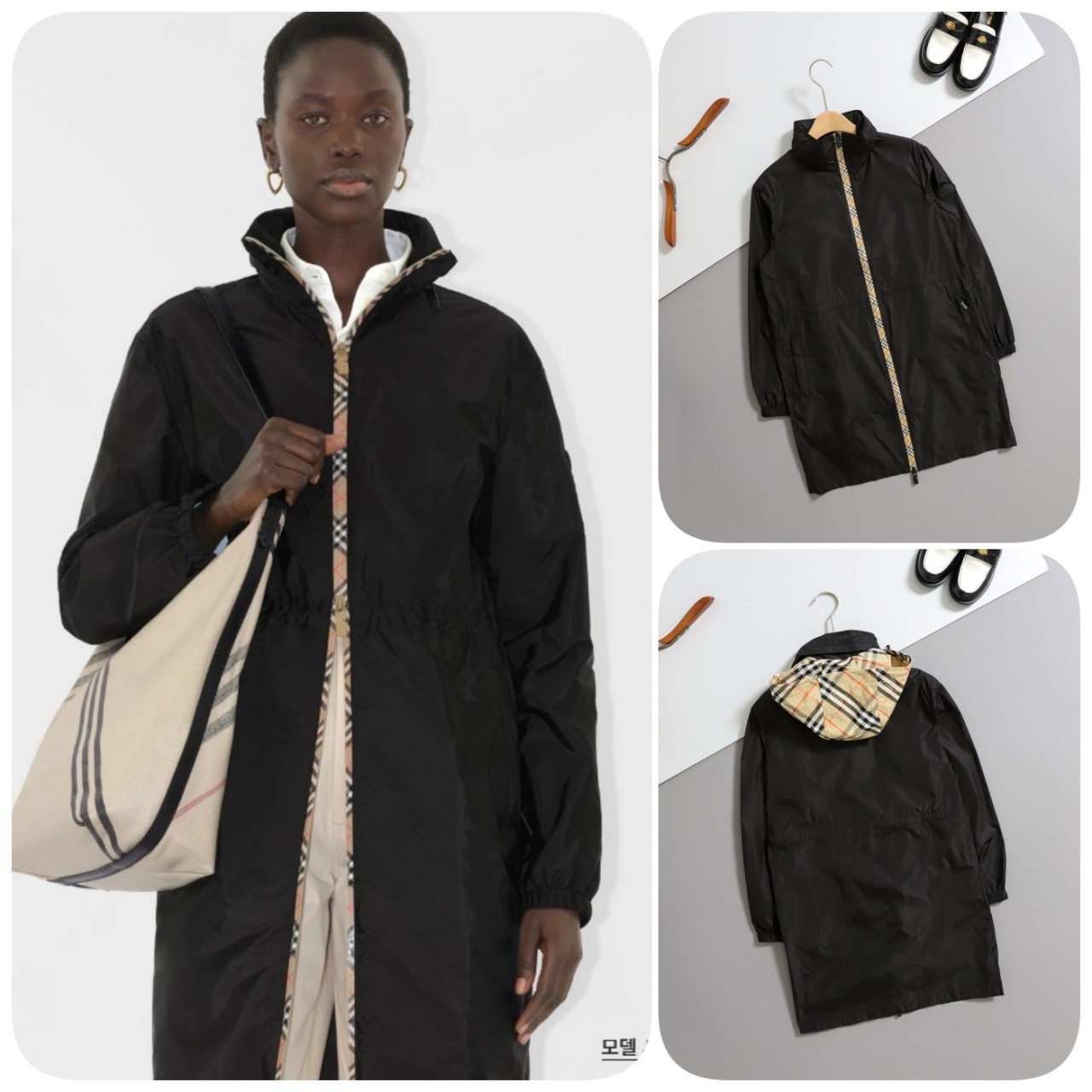 버버리 리버시블 체크 윈드 후드 자켓