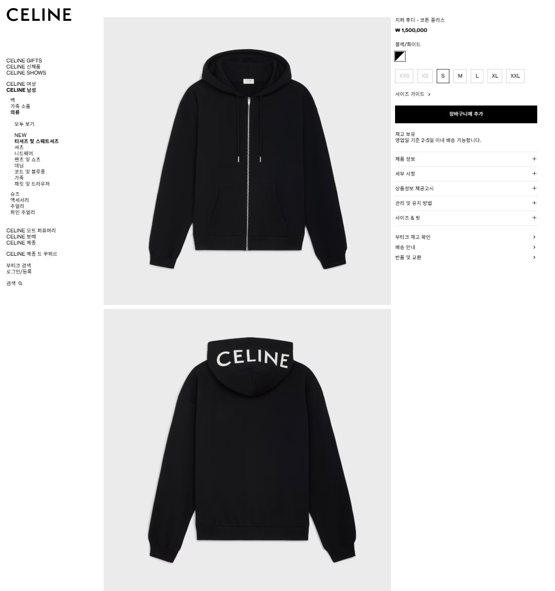 [CELINE] 셀린느 남여공용 스웻 후드 셔츠 & 스웻 조거 팬츠 셋