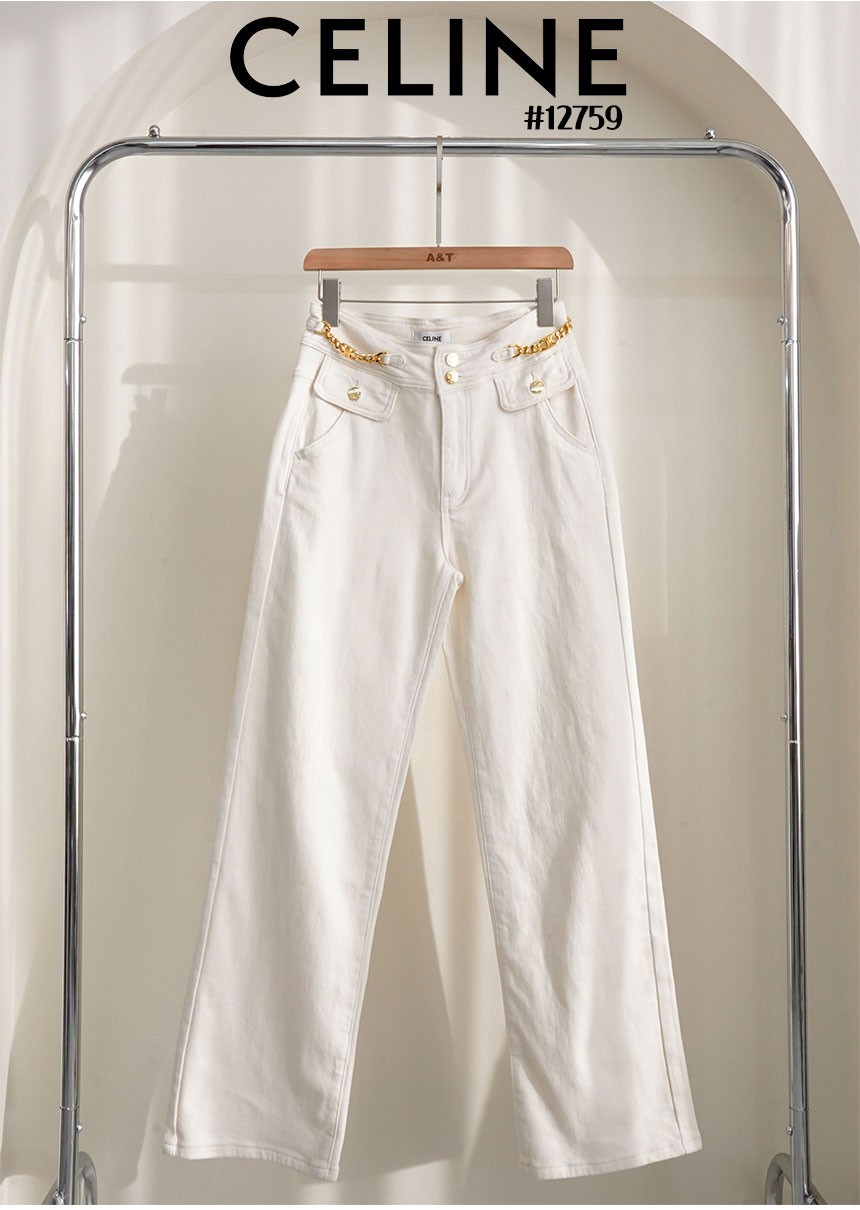 [CELINE] 셀린느 여성 체인 화이트 워시 기모 데님 팬츠