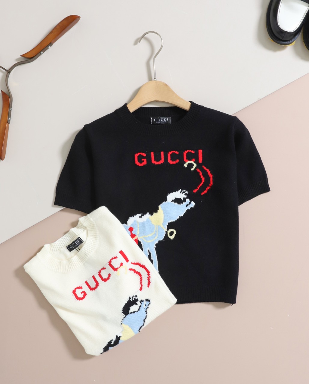 구찌 [ G ] 홀스 자수 반팔 니트 스웨터