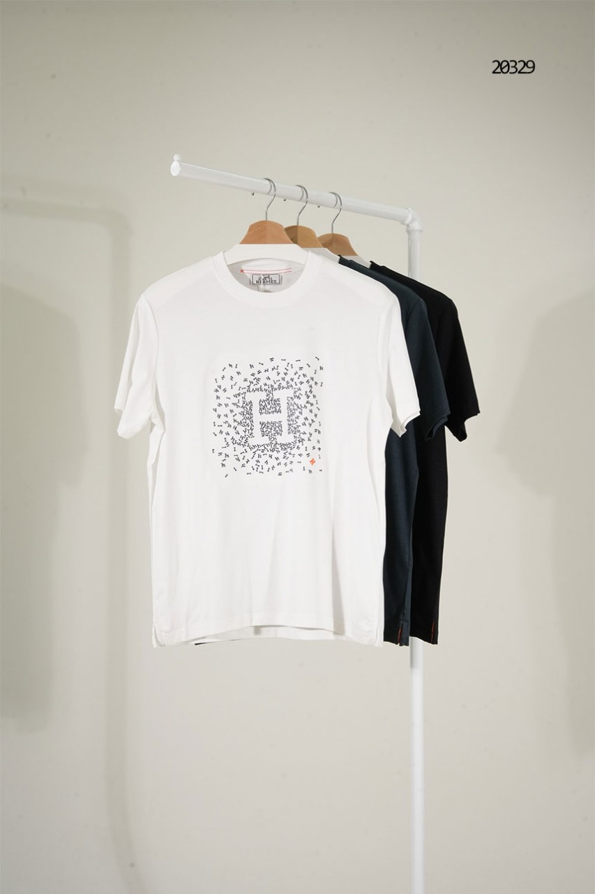 [HERMES] 에르메스 H 로고 패턴 자수 실켓 티셔츠