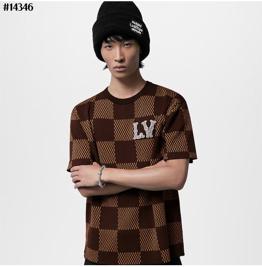 [Louis Vuitton] 루이비통 남성 크리스탈 LV 다미에 쇼트 슬리브드 코튼 티셔츠
