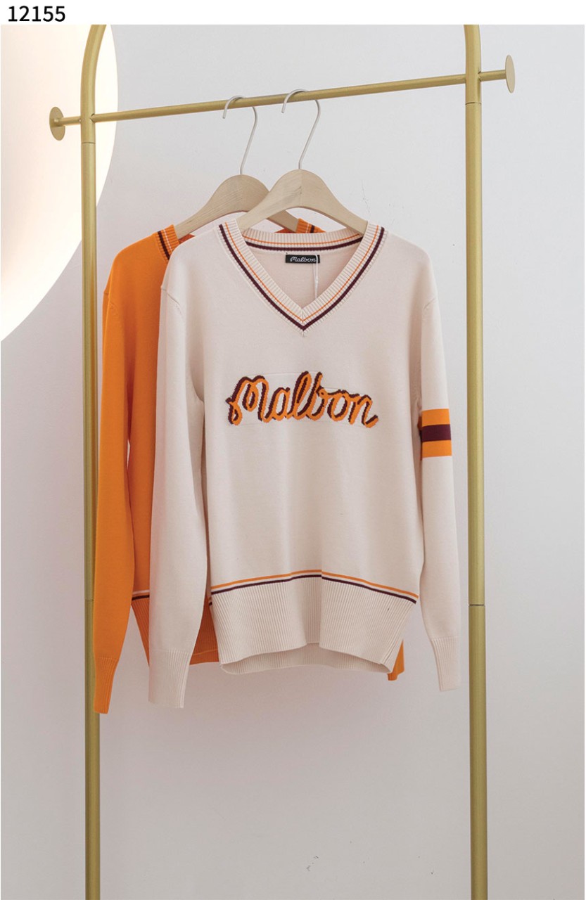 말본 [MALBON] GOLF-라운드 넥 로고 니트 탑