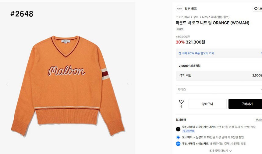 말본 [MALBON] 버킷 포인트 라운드넥 스웨터