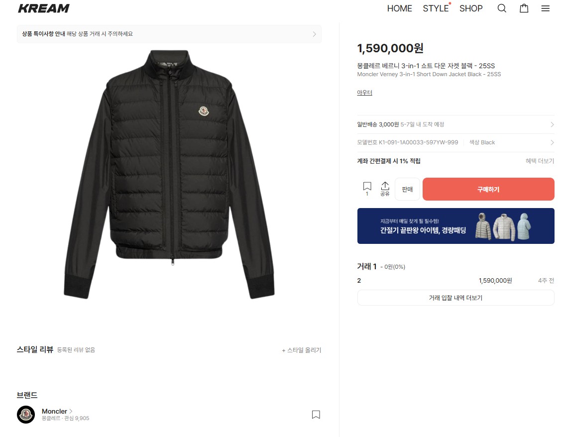 몽클레어 [MONCLER] 25FW COUYERE 쿠예르 패딩 블랙
