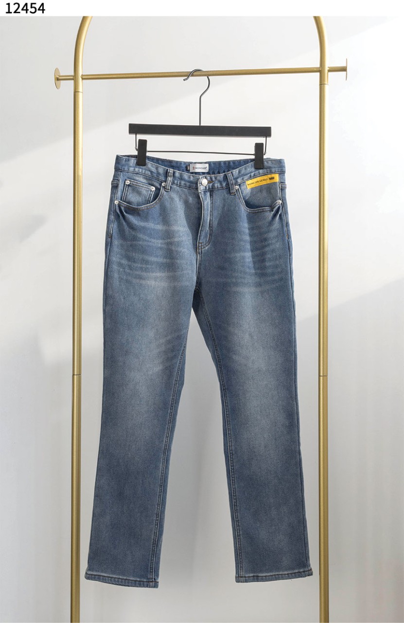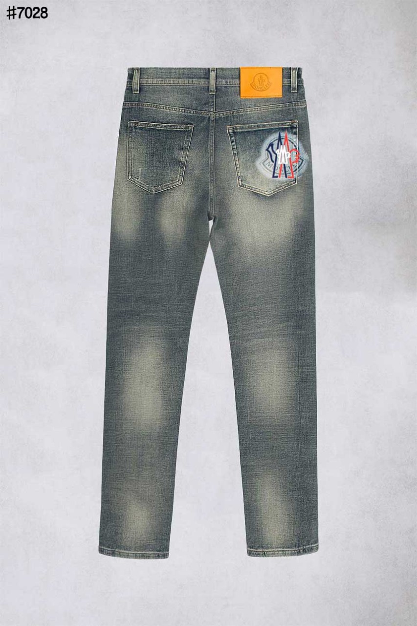 [MONCLER] 몽클레어 빅로고 레터링 자수 레더패치 데님진