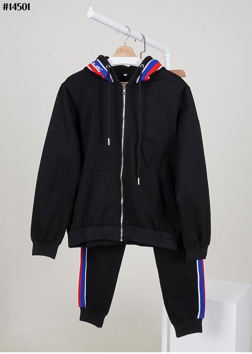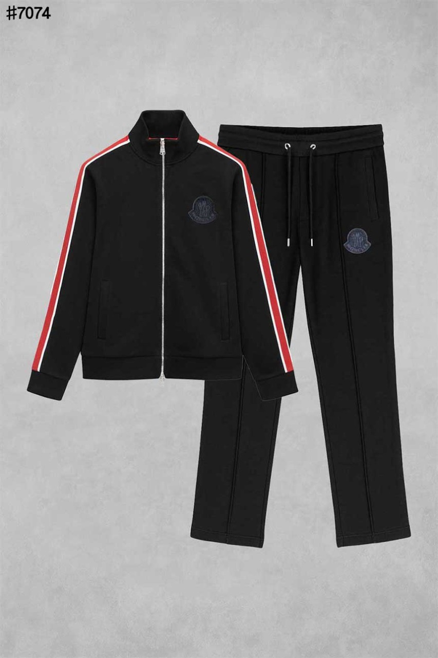 [MONCLER] 몽클레어 트리 컬러 사이드 테이프 코튼 저지 풀집업 자켓 & 밴딩 스트레이트 팬츠 셋