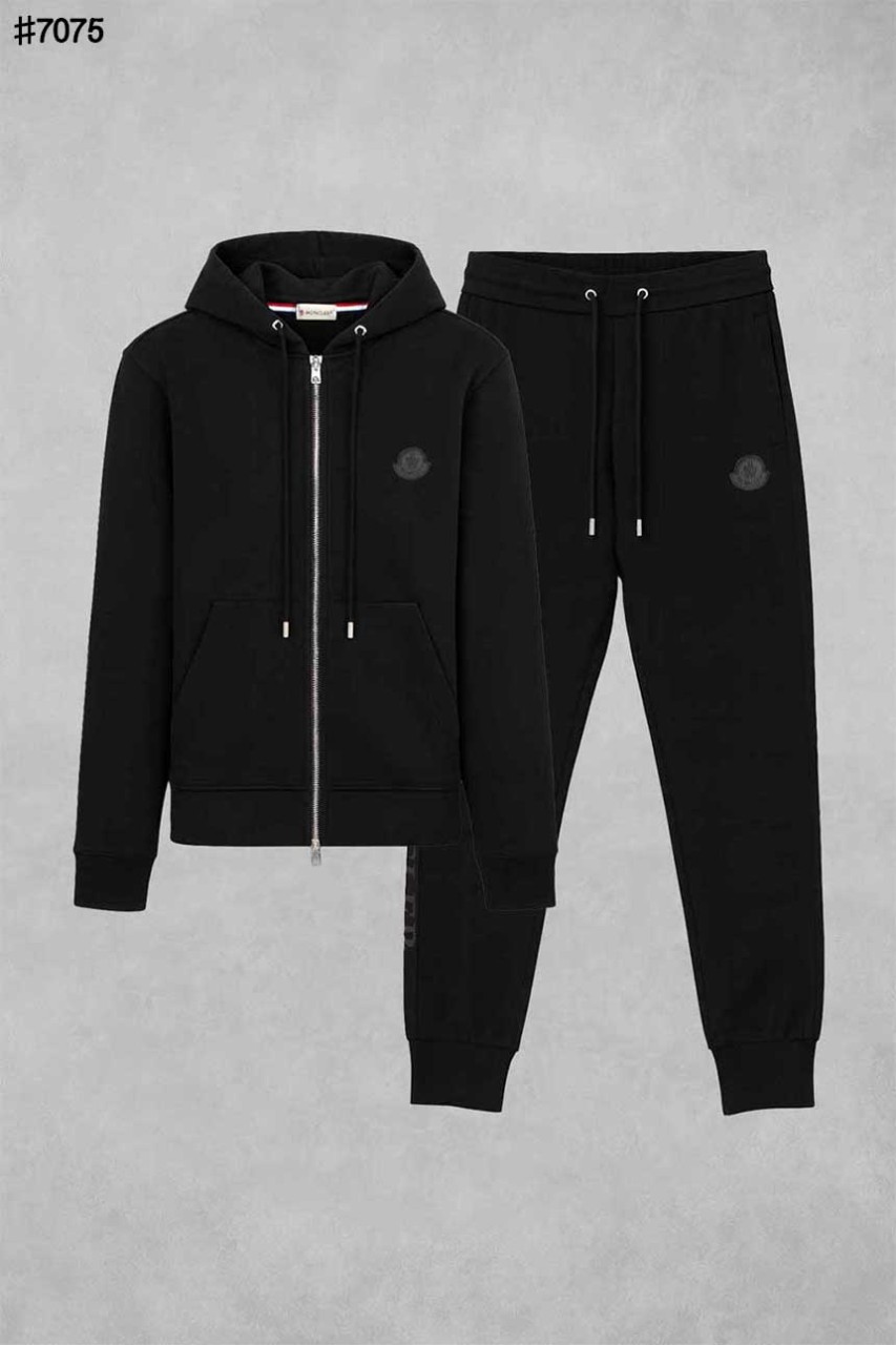 [MONCLER] 몽클레어 블랙 패치 어웨이크 코튼 저지 풀집업 후드 자켓 & 밴딩 조거 팬츠 셋