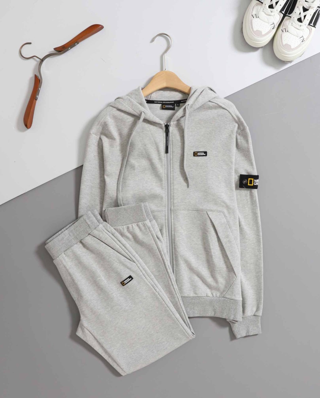 [NATIONAL GEOGRAPHIC] 내셔널지오그래픽 로고 패치 집업 후드 자켓 & 팬츠 셋