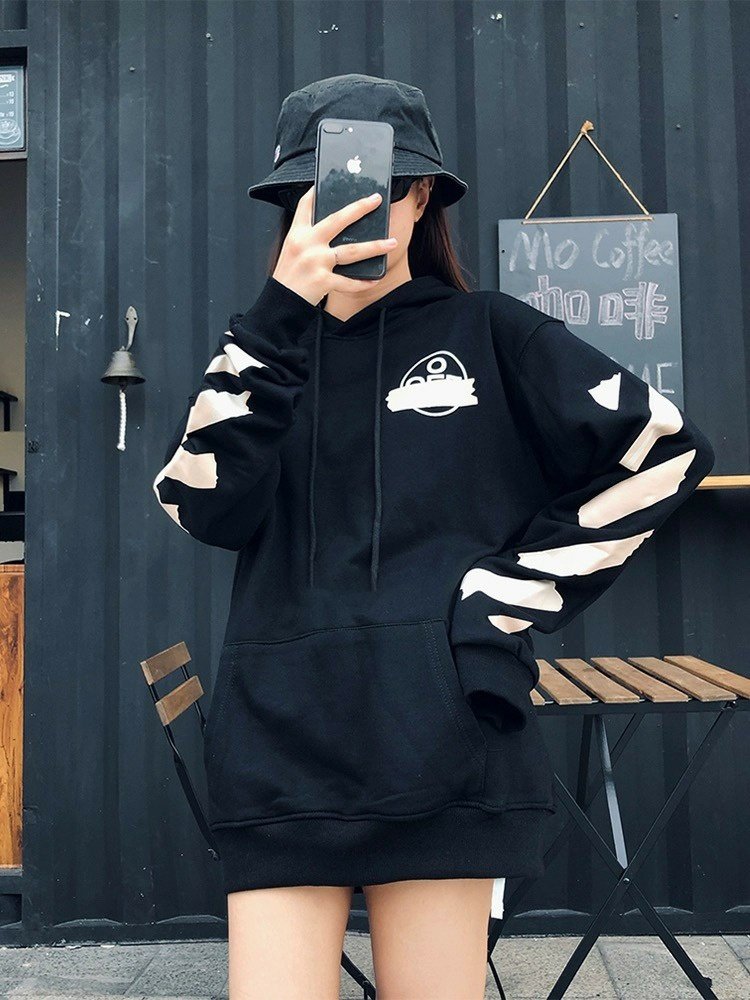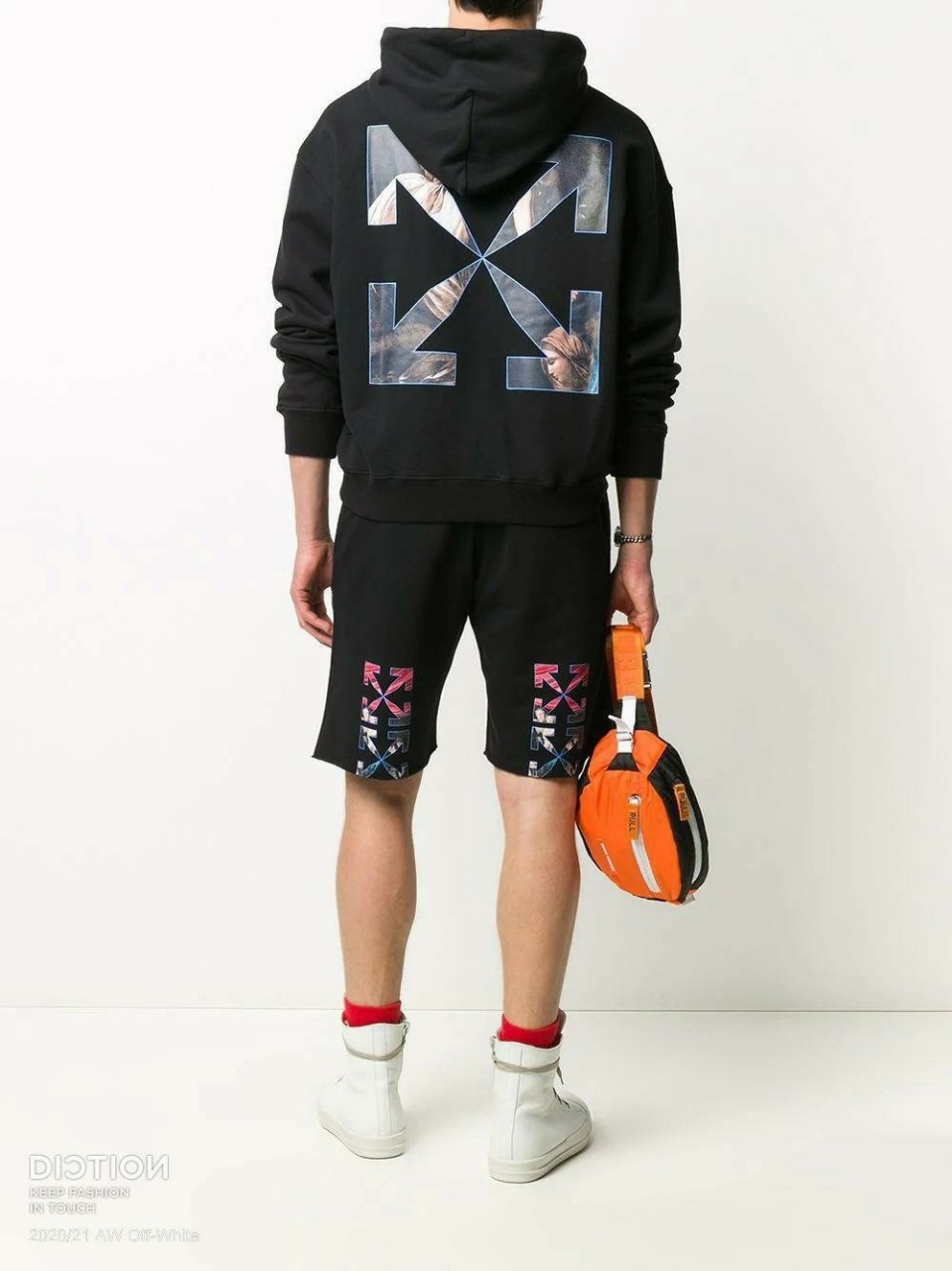 오프화이트 문 어로우 스케이트 드로스트링 후드티