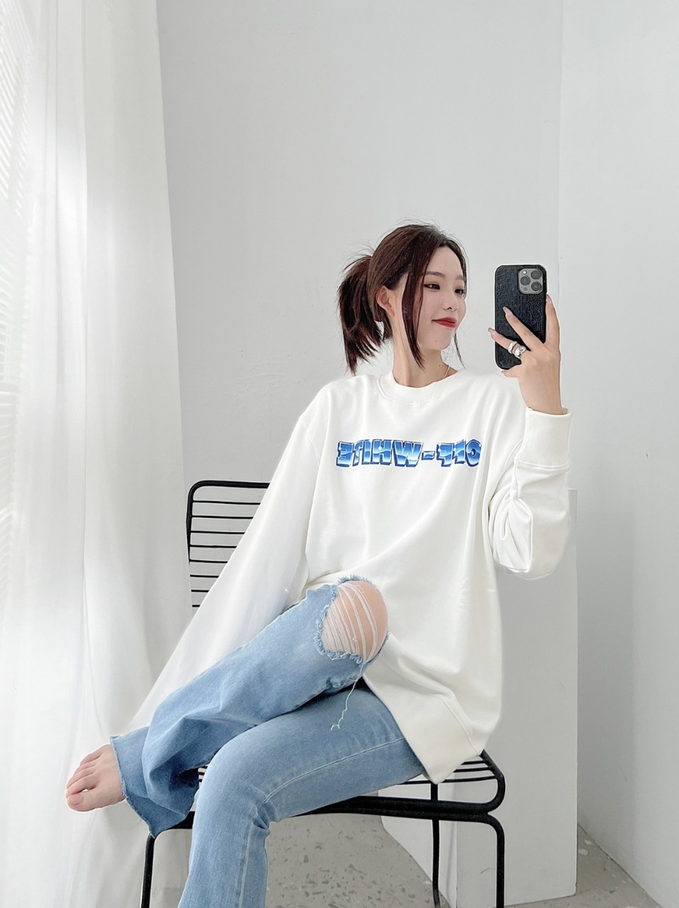 오프화이트 화이트 빈티지 컬러나염 에어탑 맨투맨