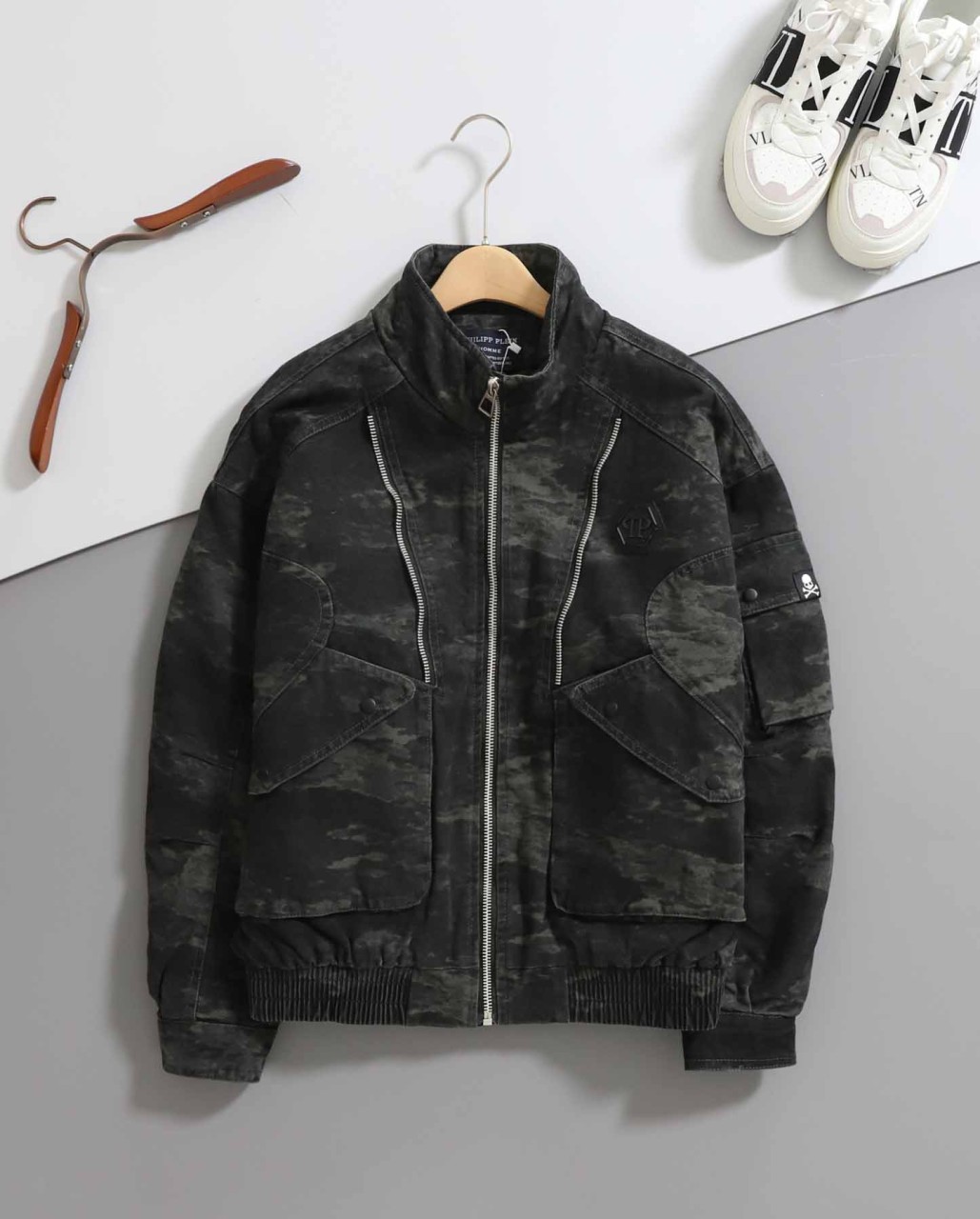 필립플레인 [ P.P ] 블랙 카모플라쥬 보머 재킷 -색상추가-