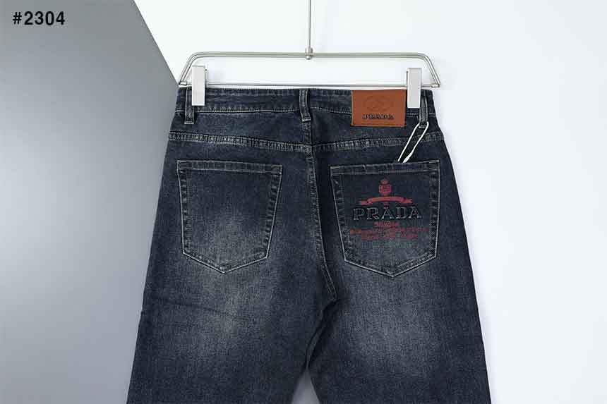 [PRADA] 프라다 레더패치 삼각로고 데님진